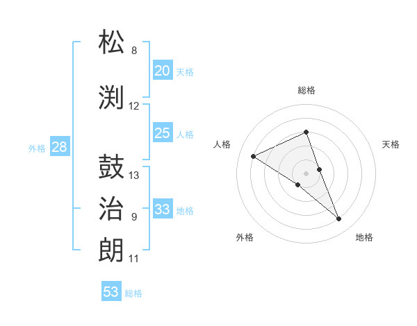 松渕 鼓治朗さんの総格は53画の3点!