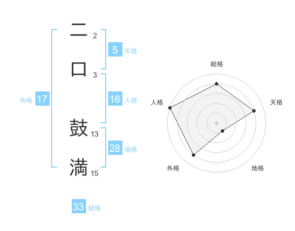 二口 鼓満さんを姓名の画数から五運を鑑定