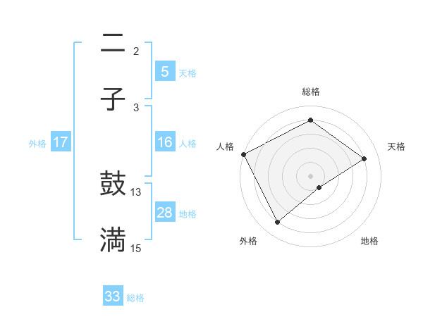 二子 鼓満さんの天格は5画の4点!