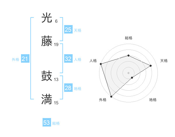 光藤 鼓満さんを姓名の画数から五運を鑑定