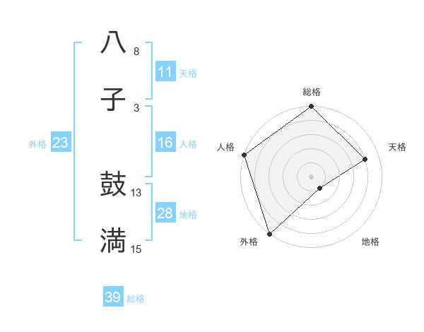 八子 鼓満さんの外格は23画の5点!
