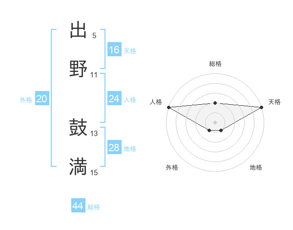 出野 鼓満さんの天格は16画の5点!