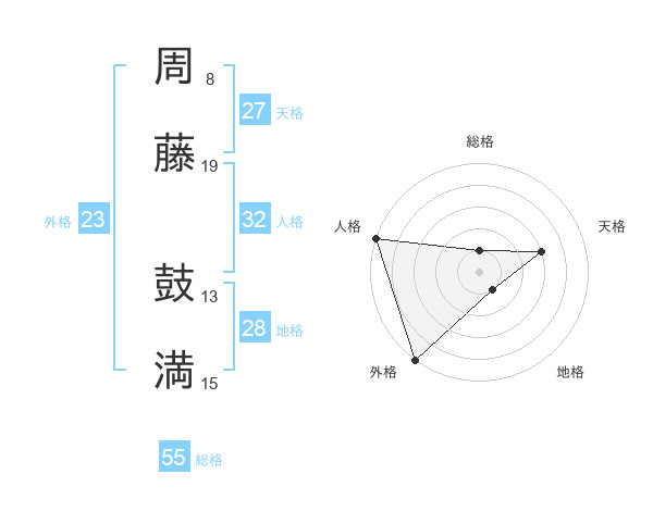周藤 鼓満さんを姓名の画数から五運を鑑定