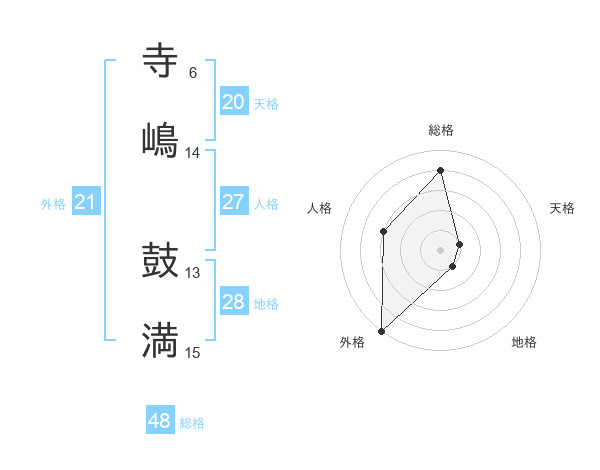 寺嶋 鼓満さんを姓名の画数から五運を鑑定
