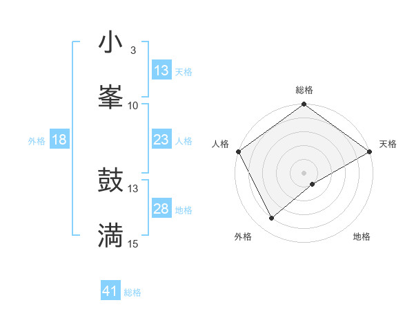 小峯 鼓満さんの天格は13画の5点!