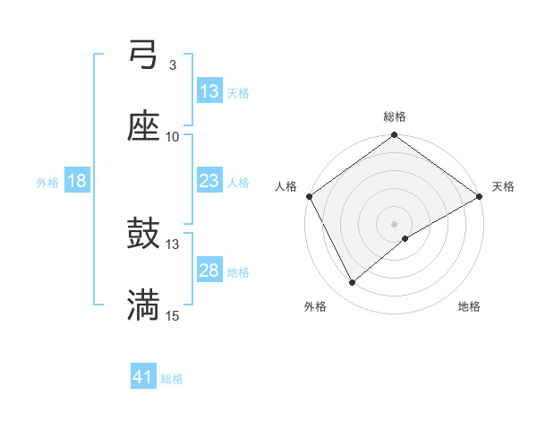弓座 鼓満さんを姓名の画数から五運を鑑定