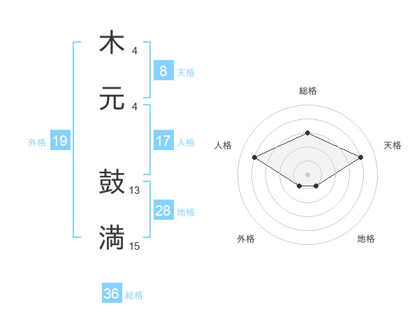 木元 鼓満さんを姓名の画数から五運を鑑定