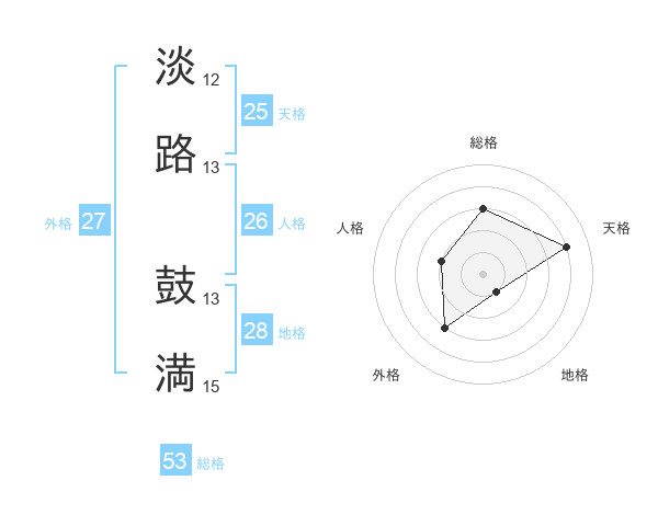 淡路 鼓満さんを姓名の画数から五運を鑑定