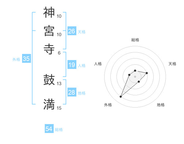 神宮寺 鼓満さんの外格は35画の4点!
