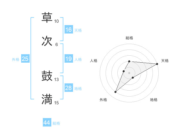 草次 鼓満さんを姓名の画数から五運を鑑定