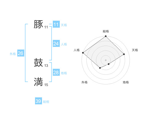 豚 鼓満さんを姓名の画数から五運を鑑定