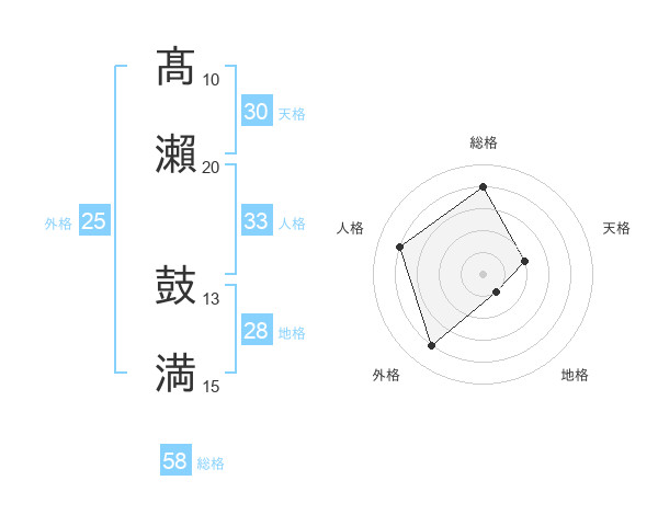 髙瀨 鼓満さんを姓名の画数から五運を鑑定