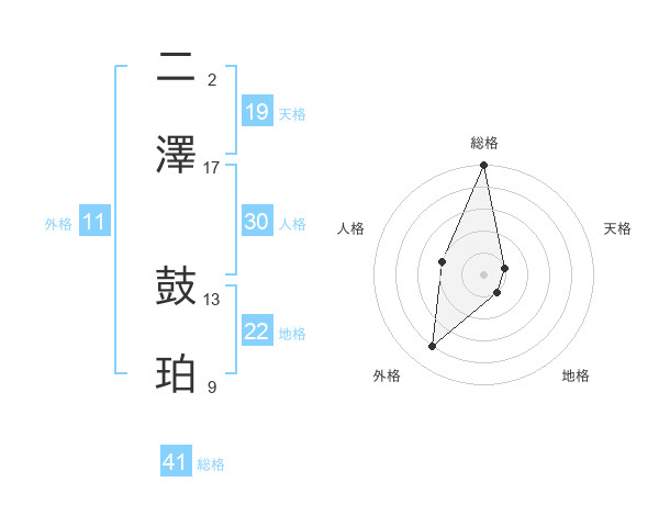 二澤 鼓珀さんの総格は41画の5点!