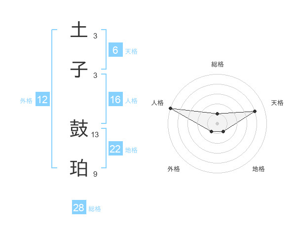 土子 鼓珀さんを姓名の画数から五運を鑑定