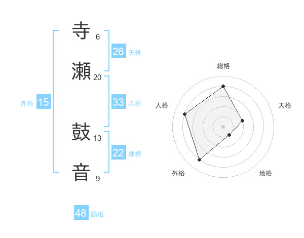 寺瀬 鼓音さんを姓名の画数から五運を鑑定