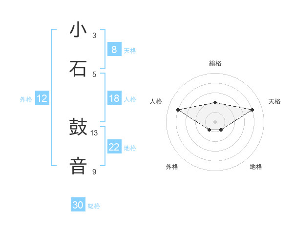 小石 鼓音さんの総格は30画の2点!