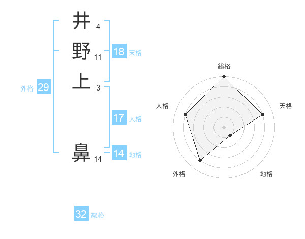 井野上 鼻さんを姓名の画数から五運を鑑定