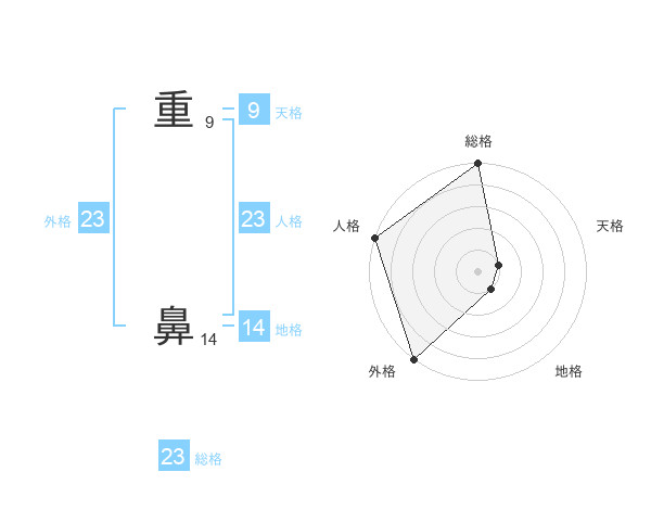 重 鼻さんの外格は23画の5点!