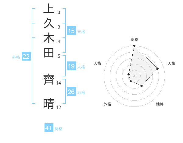 上久木田 齊晴さんを姓名の画数から五運を鑑定