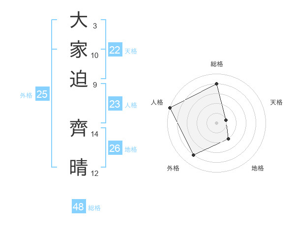 大家迫 齊晴さんを姓名の画数から五運を鑑定