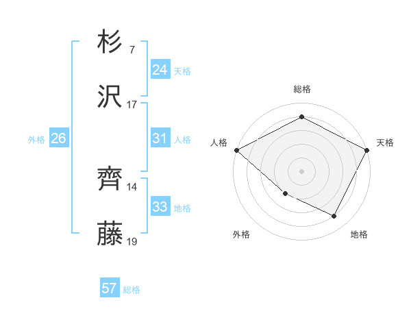 杉沢 齊藤さんの総格は57画の4点!