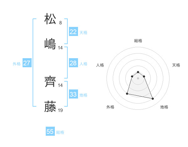 松嶋 齊藤さんの総格は55画の1点!