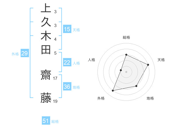 上久木田 齋藤さんを姓名の画数から五運を鑑定