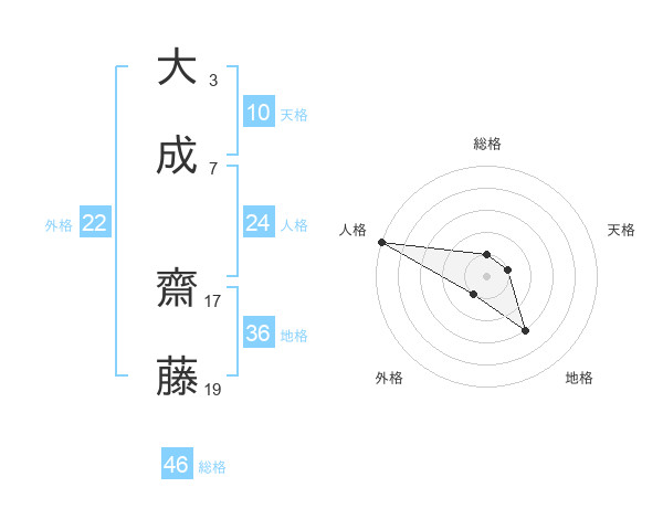 大成 齋藤さんを姓名の画数から五運を鑑定