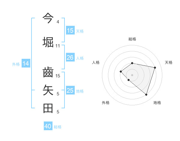 今堀 齒矢田さんの総格は40画の2点