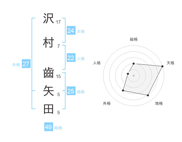沢村 齒矢田さんを姓名の画数から五運を鑑定