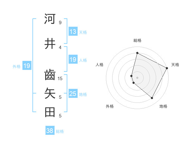 河井 齒矢田さんの総格は38画の4点!