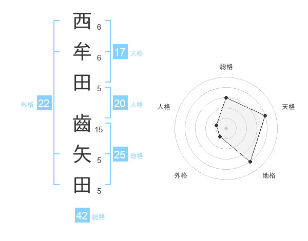 西牟田 齒矢田さんを姓名の画数から五運を鑑定