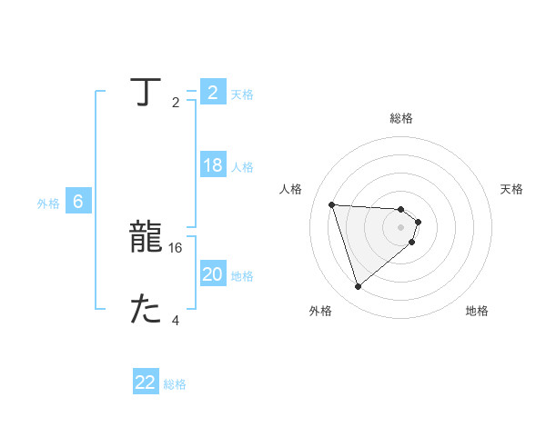 丁 龍たさんの総格は22画の1点!