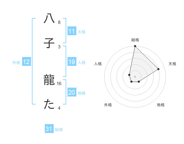 八子 龍たさんの総格は31画の5点!