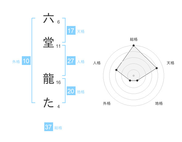 六堂 龍たさんの総格は37画の5点!