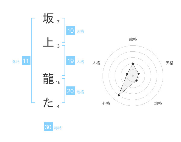 坂上 龍たさんを姓名の画数から五運を鑑定