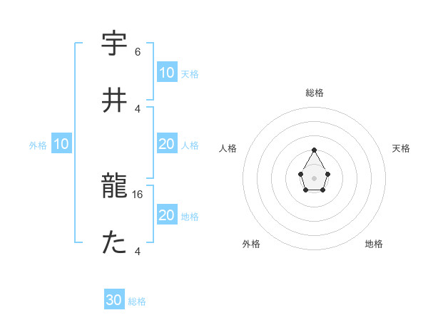 宇井 龍たさんの総格は30画の2点!