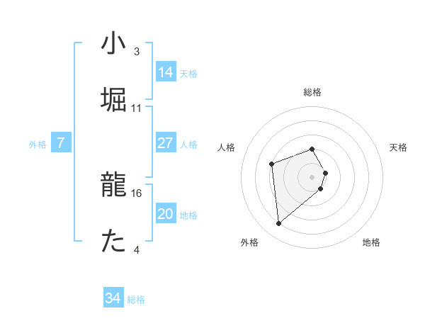 小堀 龍たさんの総格は34画の2点!
