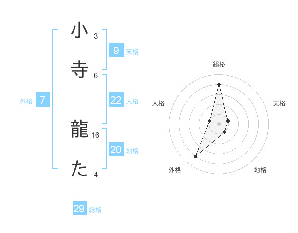 小寺 龍たさんの総格は29画の4点!