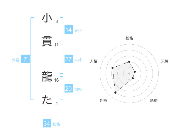 小貫 龍たさんを姓名の画数から五運を鑑定