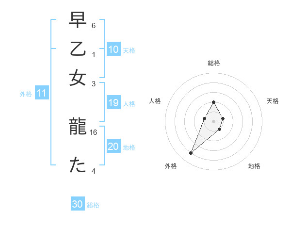 早乙女 龍たさんを姓名の画数から五運を鑑定