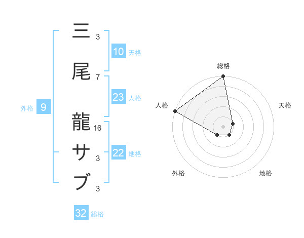 三尾 龍サブさんを姓名の画数から五運を鑑定