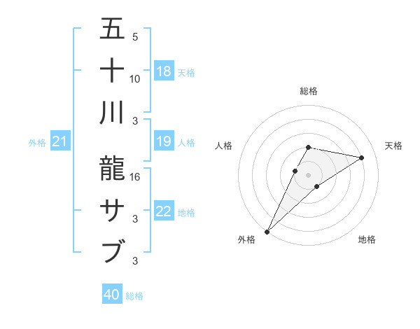 五十川 龍サブさんを姓名の画数から五運を鑑定