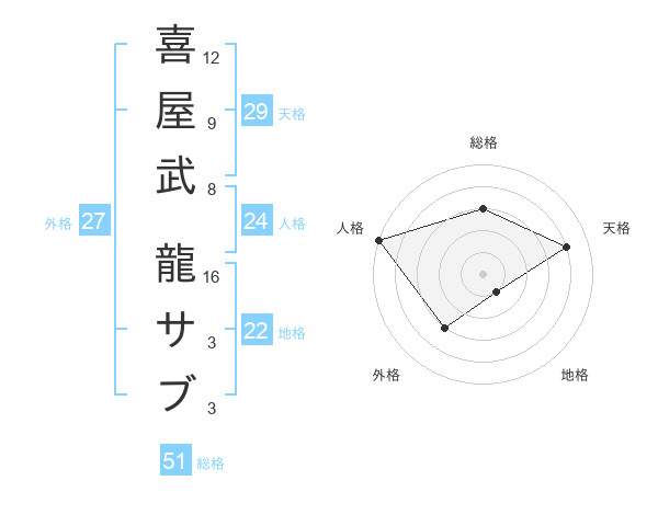 喜屋武 龍サブさんの総格は51画の3点!