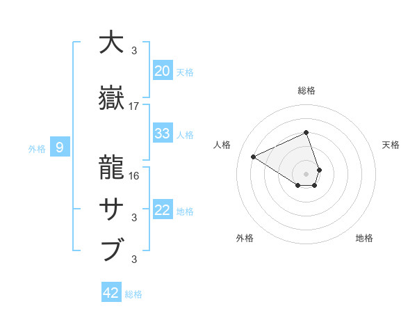 大嶽 龍サブさんを姓名の画数から五運を鑑定