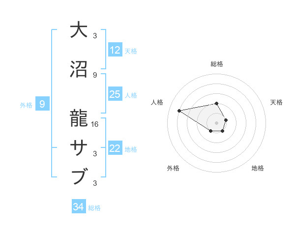 大沼 龍サブさんの総格は34画の2点