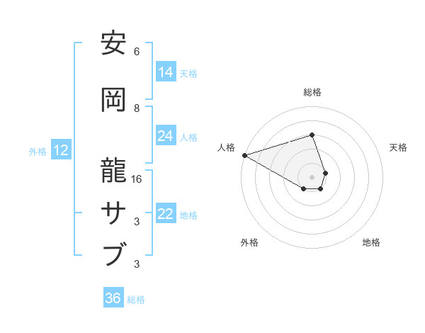 安岡 龍サブさんを姓名の画数から五運を鑑定