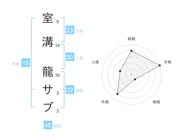 室溝 龍サブさんの総格は45画の4点!