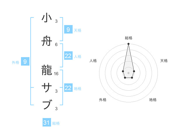 小舟 龍サブさんの総格は31画の5点!