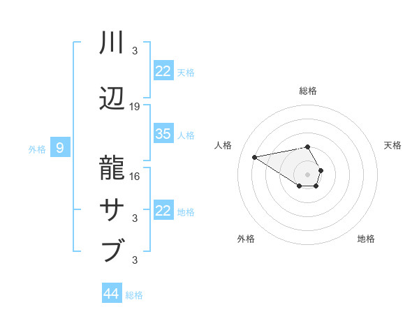 川辺 龍サブさんの総格は44画の2点!
